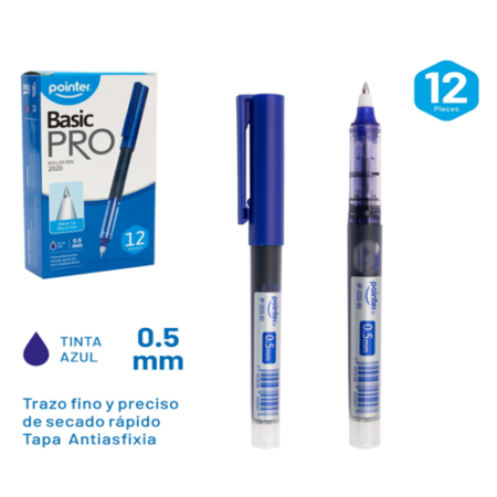 Bolígrafo azul Basic Pro roller 0.5mm caja de 12 unidades Pointer- Incluye: